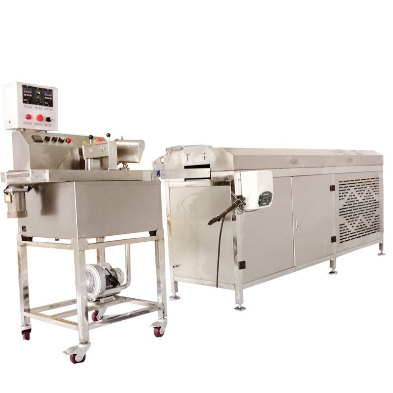 Piccola linea di rivestimento di cioccolato con galleria di raffreddamento per video con proteine: